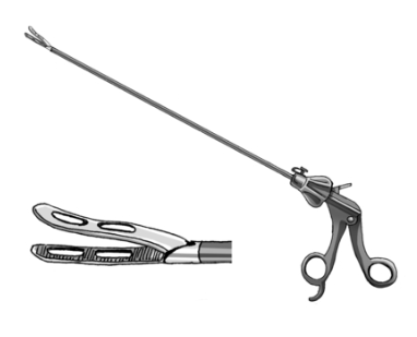 鉗子とはマジックハンドのような器具で手元で操作をするとお腹の中にある先端が動く仕組みになっています。種類があり、物を掴んだり、切ったり、つまんだりと様々なタイプの道具を使って手術を行います。手術をする人(術者)も助手、麻酔係も全てモニターも見て行います。通常であれば見にくい場所であっても細かく見ることが可能なのです。